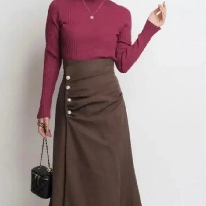 빅 사이즈 펄 버튼이 달콤한 빛을 발하는 스커트.