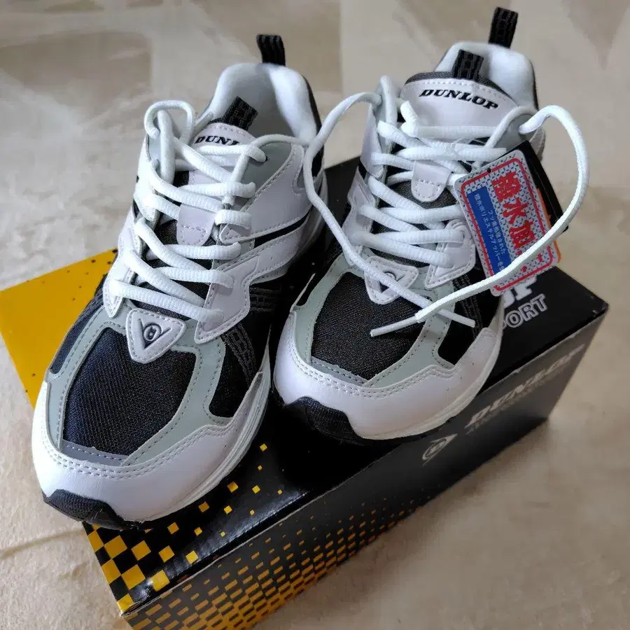 DUNLOP의 스포츠 슈즈, 화이트와 블랙의 배색으로 스타일리시한 디자인. - 브랜드: DUNLOP - 색상: 화이트/블랙 - 스타일: 스포츠 슈즈 - 모델: 맥스런라이트 M153 방문해 주셔서 감사합니다.