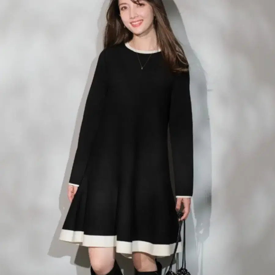 원단 끝의 컬러 디자인이 코디네이트에 표정을 더하는 원피스입니다. 니트 소재로 만들어 따뜻한 질감을 연출합니다. 백 부분의 펄 조가 은은한 악센트가 됩니다 ◎ 추운 계절 외출 시 유용하게 사용할 수 있는 아이템입니다.