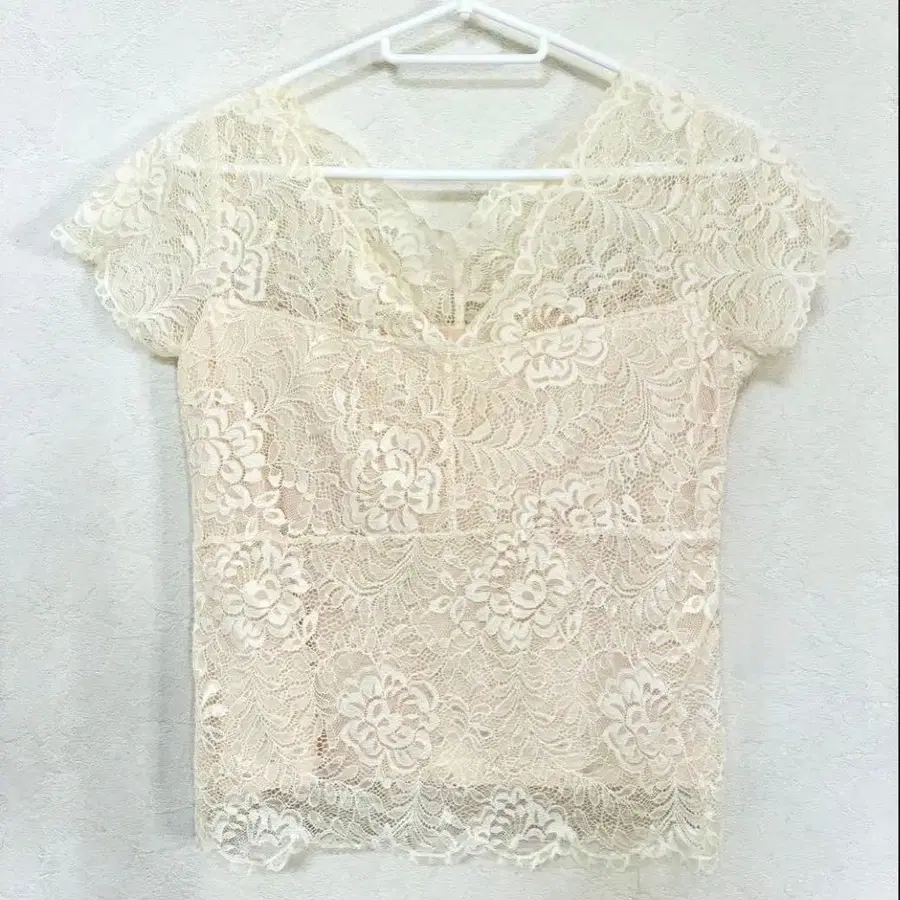 아이보리 레이스 소재로 엘레강트한 디자인의 반팔 상의입니다. 상의 하나만으로도 멋스럽지만, 상의 아래에 착용하여 레이스를 은은하게 보이면 멋스러운 코디가 됩니다! 스태프 분께서 상의와 레이어드하여 레이스를 살짝 보이게 하는 코디가 유행이라고 하여 충동적으로 구매했지만 착용할 기회가 없어 미사용 상태로 보관했습니다. - 색상: 아이보리 - 소재: 나일론 90%, 폴리우레탄 10% - 사이즈: 기장 50cm, 가슴둘레 37.5cm, 소매 13cm 약간의 신축성 있음. 아마추어의 눈으로 측정한 것이므로 오차가 다소 있을 수 있으나 양해 부탁드립니다. 개인 보관 중인 상품이므로 이해해 주시는 분께 부탁드립니다. *트러블 방지를 위해 반품, 환불 등은 접수하지 않습니다. 방문해 주셔서 감사합니다.