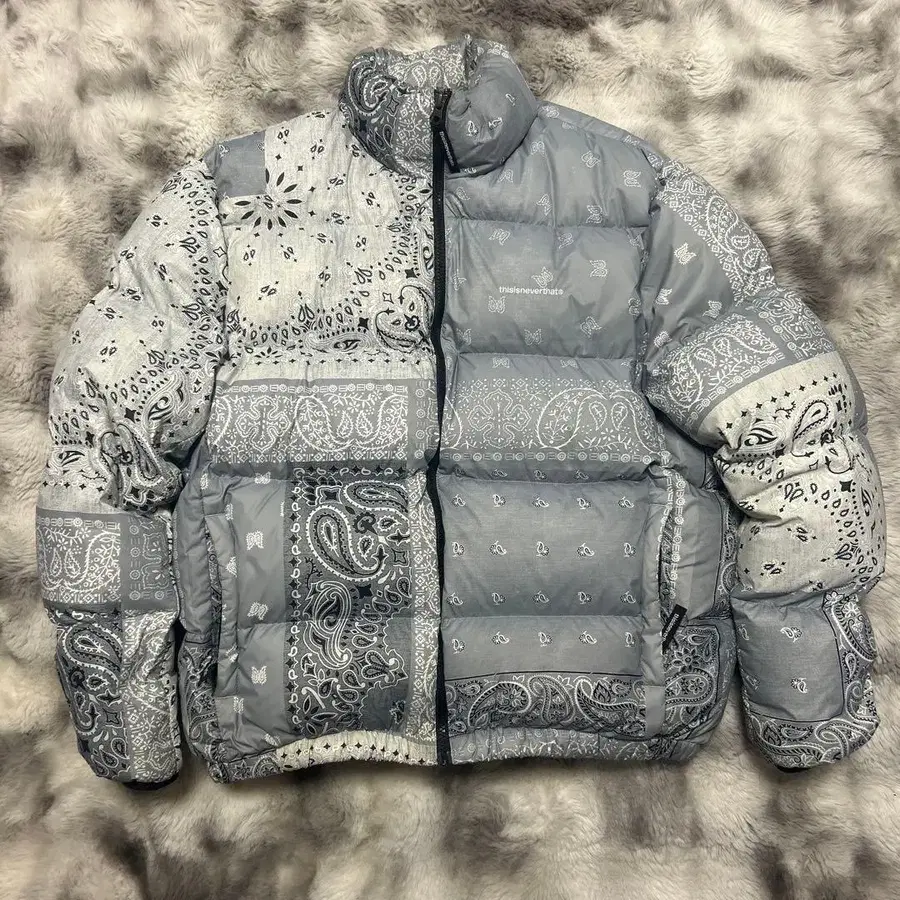 반다나 패턴 디자인의 그레이 다운 자켓으로, 보온성이 뛰어난 아이템입니다. - 브랜드: thisisneverthat - 색상: 그레이 - 디자인: 반다나 패턴 - 소재: 다운 충전재 방문해 주셔서 감사합니다. 사이즈 - M