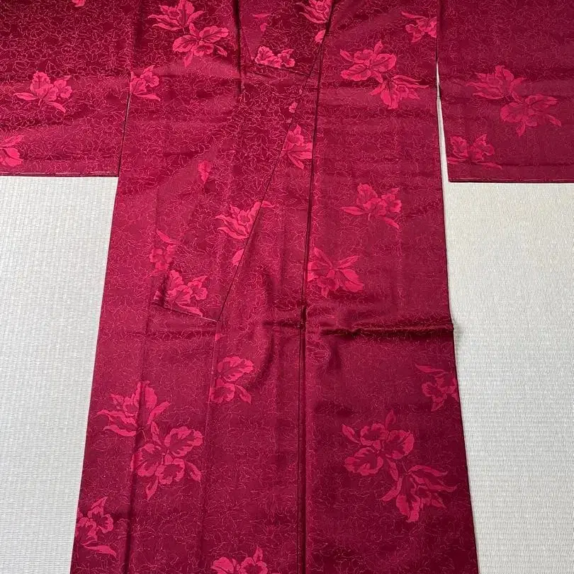 팥색과 같은 직조 기모노(홑옷)입니다.