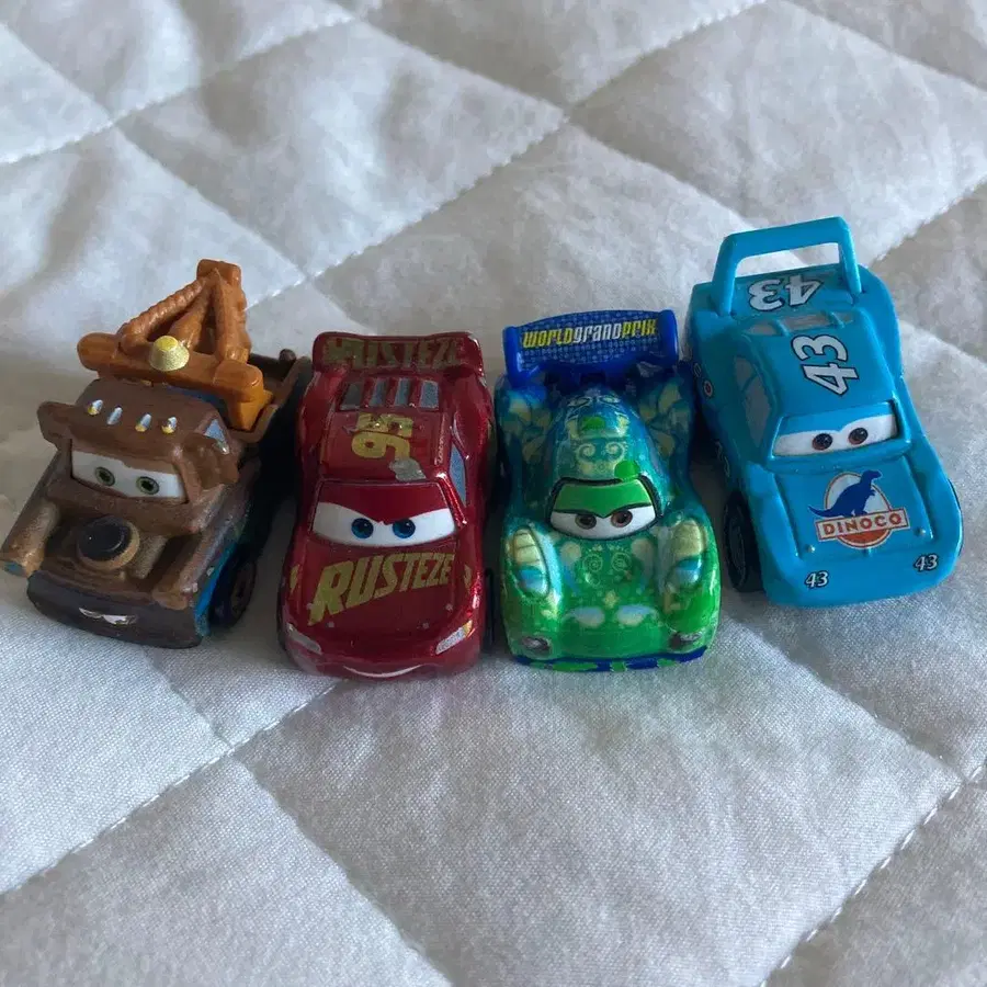 카 시리즈 미니카 4대 세트, 선명한 디자인이 특징. - 모델: 맥퀸, 메이터, 더스티, 다이노코 - 색상: 빨간색, 파랑, 그린, 브라운 - 캐릭터: 카 시리즈 - 소재: 플라스틱 - 사이즈: 미니카 사이즈 방문해 주셔서 감사합니다.