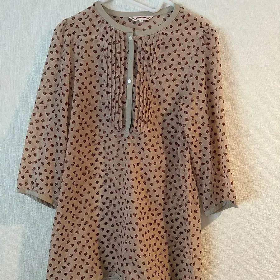베이지에 빨간색 꽃무늬 7부 소매 튜닉, 앞면에 플리츠와 버튼 디자인. - 색상: 베이지에 빨간색 꽃무늬 - 디자인: 앞면에 플리츠와 버튼 포함 방문해 주셔서 감사합니다. 사이즈 - L