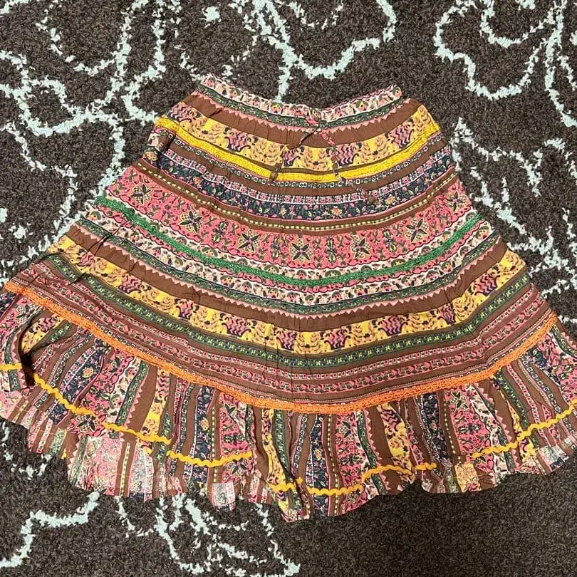 보헤미안풍 멀티 컬러 플레어 스커트