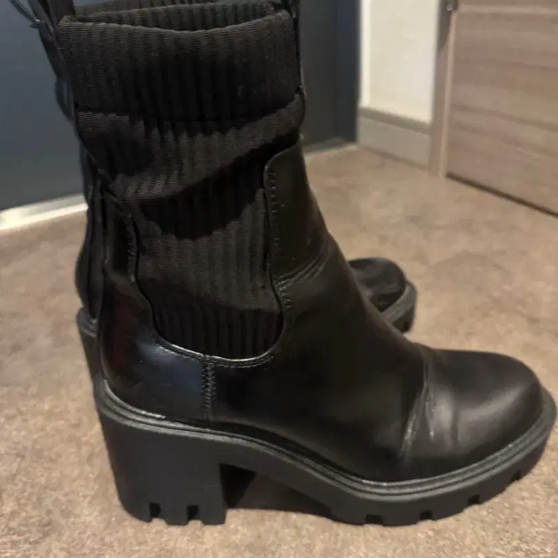 블랙 사이드 고어 부츠 사이즈는 36입니다. 5-6회 정도 착용했으며, 마찰이 있으니 사진으로 확인해 주세요m(_ _)m - 색상: 블랙 - 디자인: 사이드 고어 부츠 - 굽 높이: 통굽 - 소재: 가죽풍과 니트 - 특징: 스트레치 소재의 입구 방문해 주셔서 감사합니다.