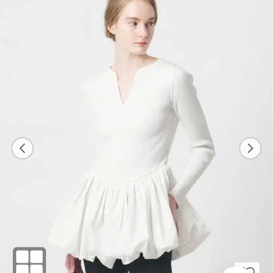 소매 프릴 페넬 이소재 긴팔 상의
