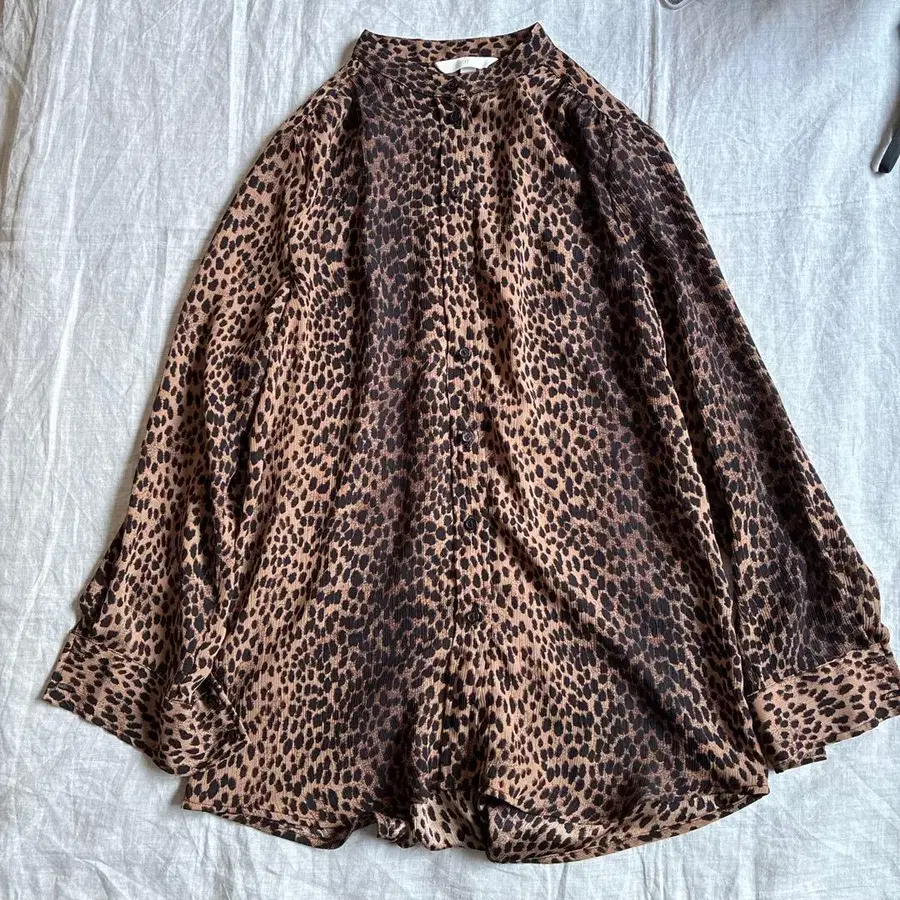 H&M 브라운 계열 레오파드 무늬 밴드 카라 셔츠 블라우스