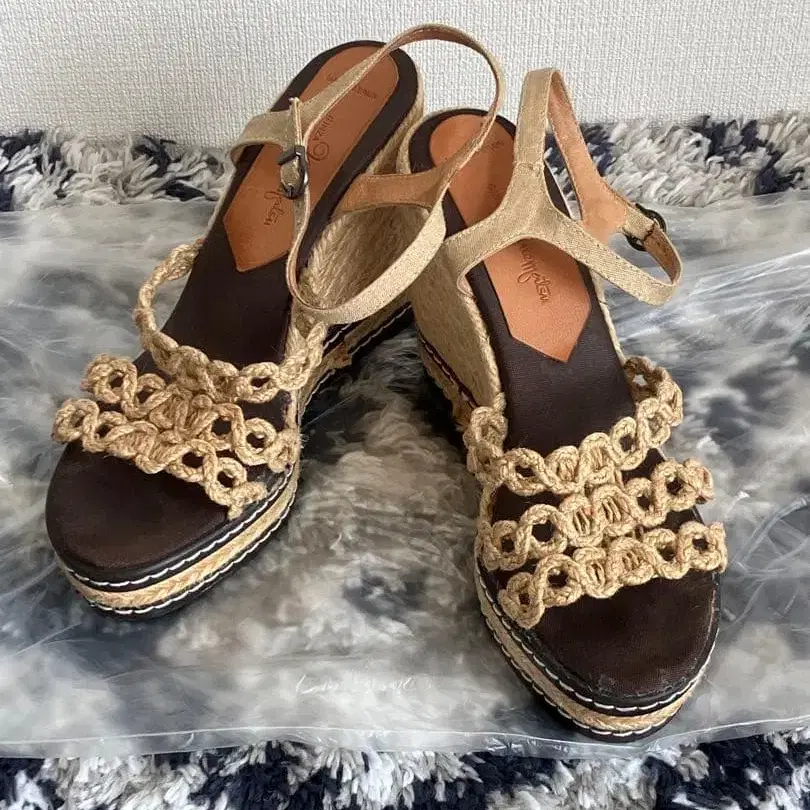 긴자 카네마츠 로프 짜임 장식 웨지 샌들 스페인산