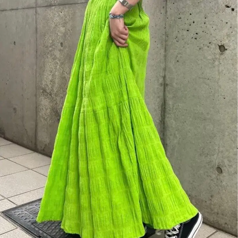 ciaopanic의 스커트입니다. 2~3회 정도 착용했지만 복장의 계통이 바뀌어 판매합니다. 사이즈 - FREE SIZE 컬러 - 그린 계열 패턴 - 무지 얼룩, 찢김, 냄새 등 - 없음