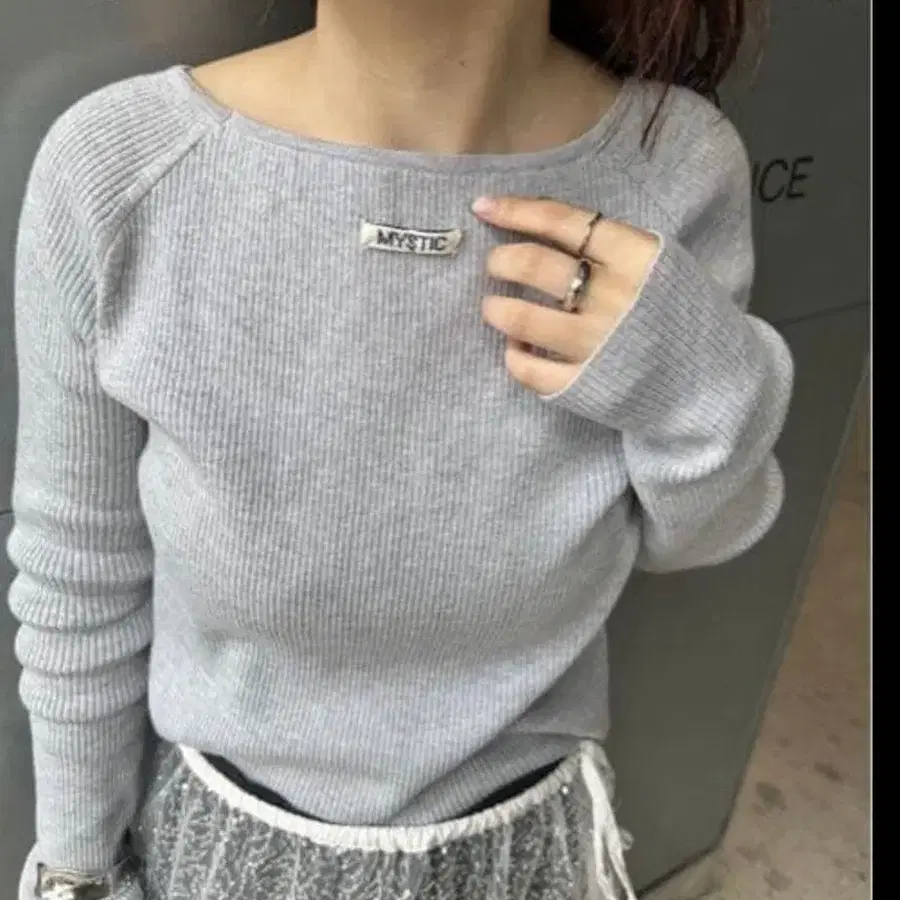 mystic 그레이 크루 리브 니트 FREE 사이즈