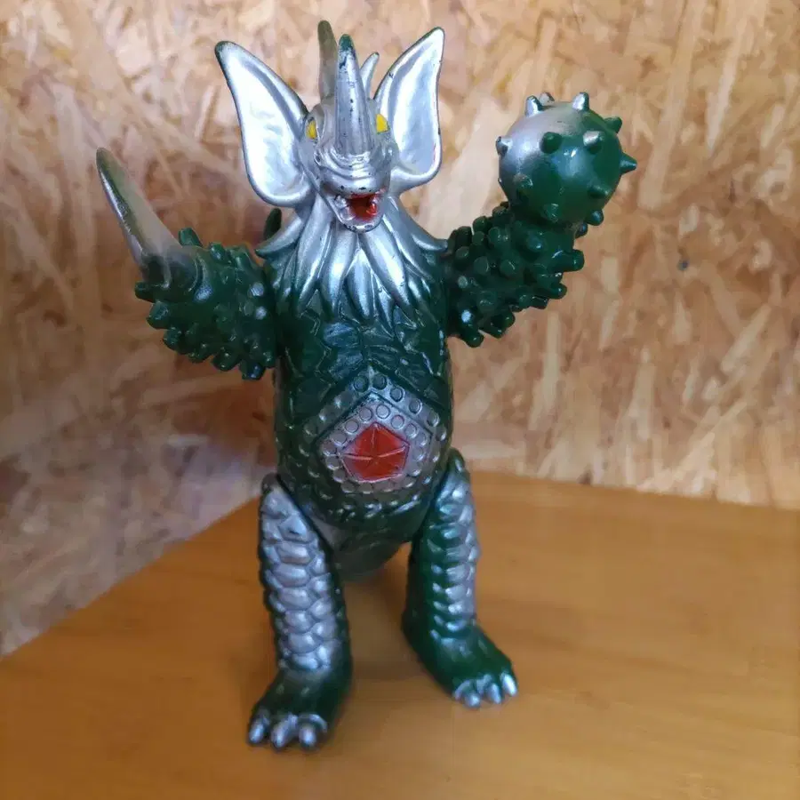 그린과 실버 괴수 피규어, 뾰족한 귀와 가시가 있는 디자인이 특징. - 색상: 그린과 실버 - 디자인: 괴수 피규어 - 특징: 뾰족한 귀와 등 부분의 가시 - 손: 가시가 있는 손 - 꼬리: 긴 꼬리 - 뒷면: 등 부분에 가시가 있음 방문해 주셔서 감사합니다.