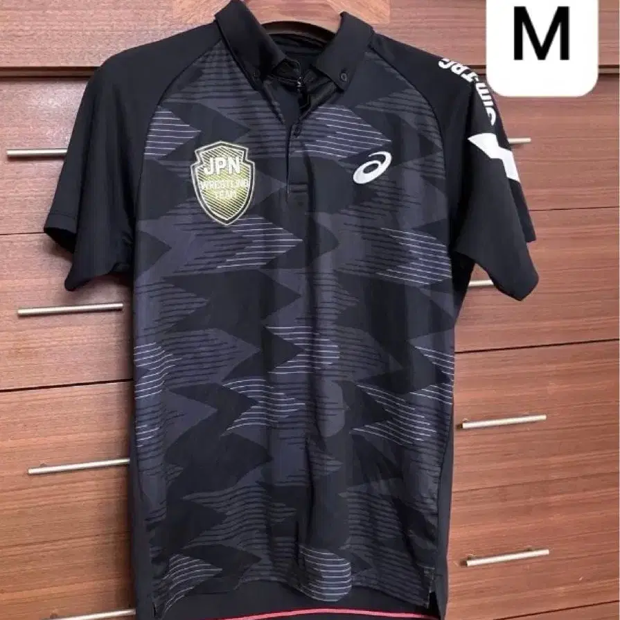 자동 번역되었어요. 원문보기JAPAN 레슬링 팀 피케 셔츠, 지오메트릭 디자인, M 사이즈, ASICS 제조.