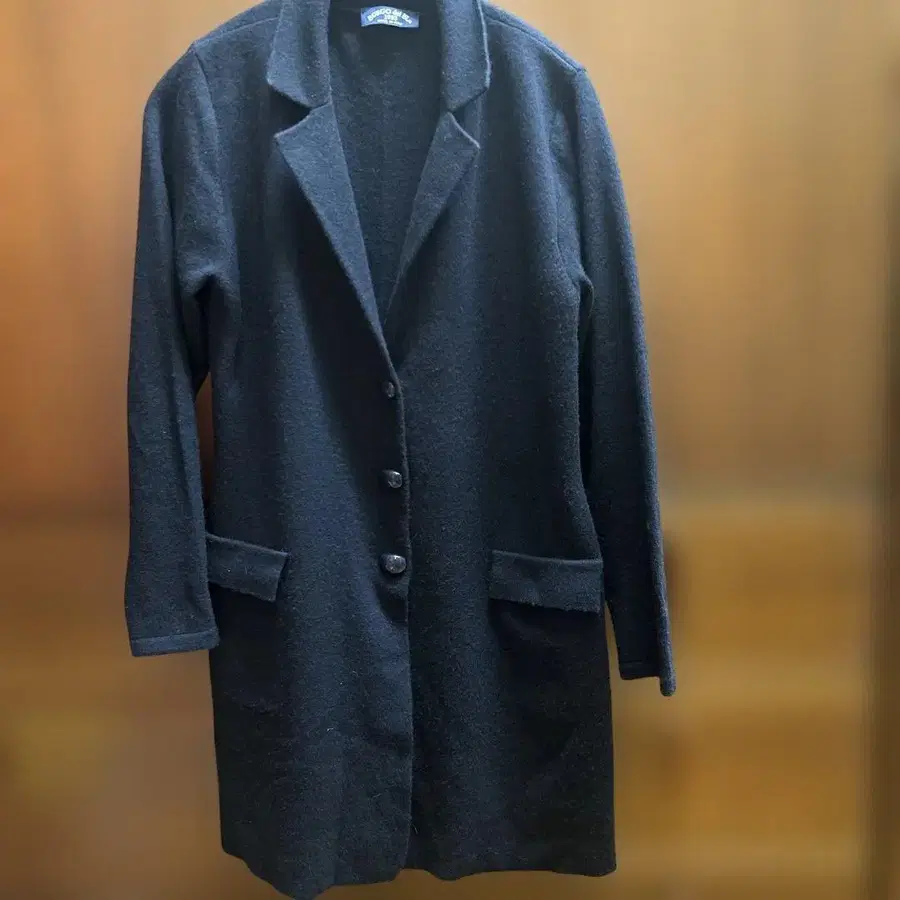 네이비 색상의 롱 기장 캐시미어 니트 가디건입니다. 고급 캐시미어로 가볍고 따뜻합니다. 앞면에 버튼이 3개 달려 있습니다. 거의 착용하지 않았습니다.