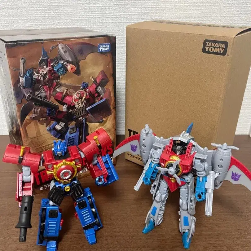 트랜스포머 하프 오브 스틸의 옵티머스 프라임, 스타스크림 세트입니다. 본체에 흠집 등은 없으나, 개봉 시 외부 박스에 찢김이 생겼습니다. 부속품 등은 모두 갖추어져 있습니다. 낱개 판매는 대응하지 않습니다.