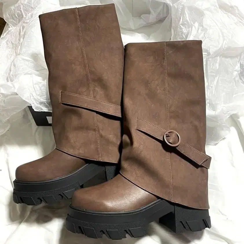 새상품 EMODA 커버 탱크 부츠 브라운 L 사이즈