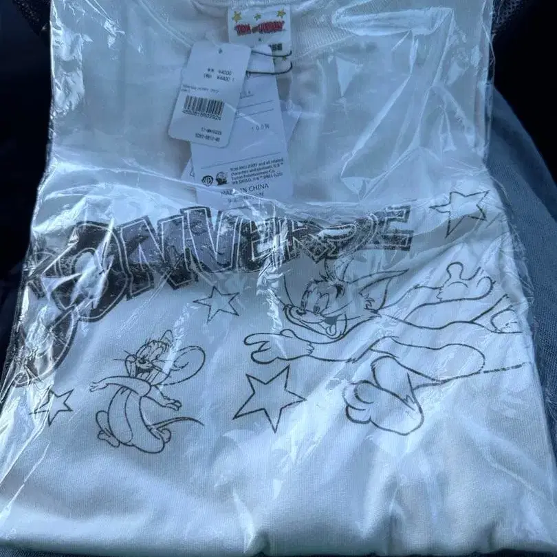 톰과 제리와 컨버스의 콜라보 T셔츠입니다. 사이즈는 L이지만 사이트 표기상 여성 사이즈로 되어 있었습니다. 미사용 새상품입니다.
