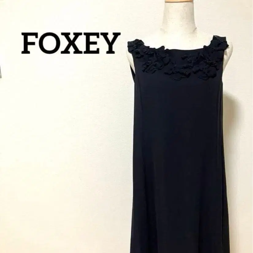 플라워 모티브가 특징인 블랙 슬리브리스 원피스입니다.