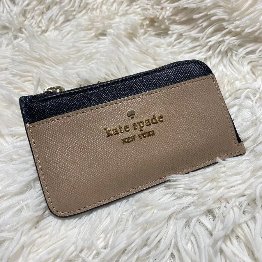 합성 피혁 소재의 핑크와 블랙 카드 케이스, 카드 포켓 4개와 지퍼 포함. 사진보다 약간 더 핑크빛을 띱니다. - 브랜드: kate spade - 색상: 베이지/블랙 - 소재: 합성 피혁 - 포켓 수: 카드 포켓 4개 - 지퍼: 있음 약 4년 전에 새 상품으로 구매했습니다. 약 1년 전부터 사용하지 않아 옷장에 보관 중이었습니다. 비교적 눈에 띄는 흠집이나 얼룩 등은 없지만, 중고품이라는 점을 이해하신 후 구매 부탁드립니다. 평가 이후의 반품 및 교환 등은 대응이 어렵습니다.