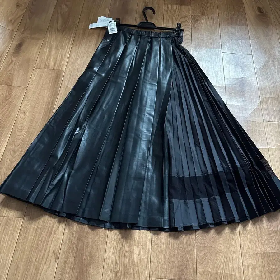 가격 인하 미사용 새상품 두클라쎄 에코 가죽 플리츠 롱 스커트 Black