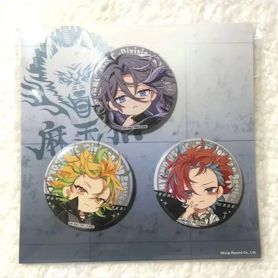 히프노시스 마이크의 진구지 쟈쿠라이와 이자나미 히후미, 칸논자카 돗포의 캔뱃지입니다.