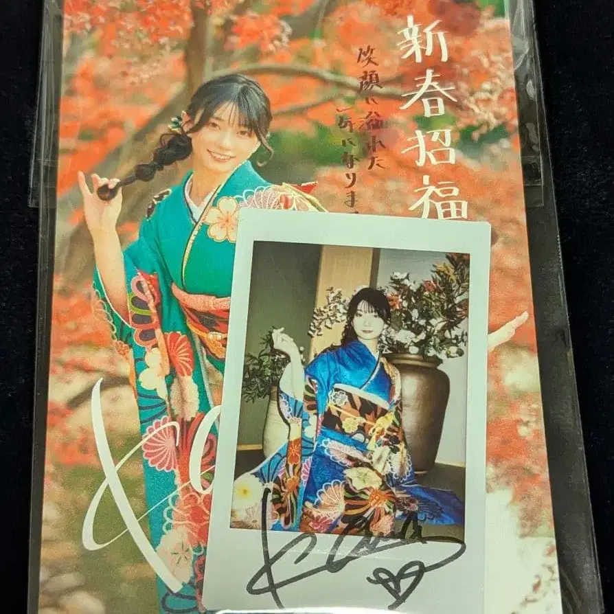 세토 카나 연하장 엽서 & 친필 사인 폴라로이드 세트 4