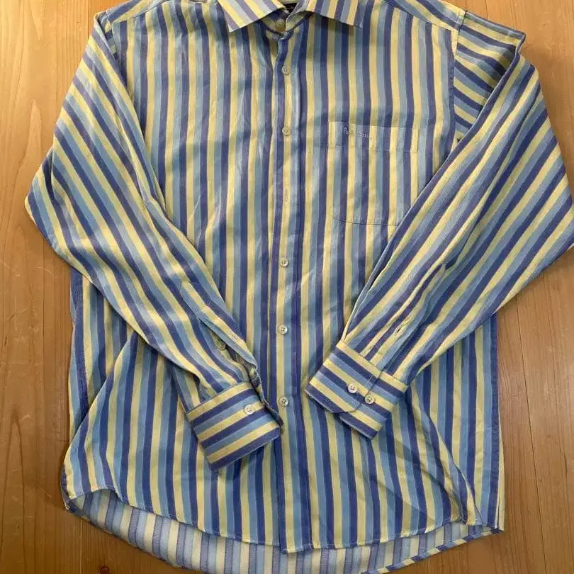 Paul Smith의 멀티 컬러 스트라이프 패턴 긴팔 셔츠입니다. 사이즈 표기는 없지만 M 사이즈 정도라고 생각됩니다. 파랑, 스카이블루, 옐로우 컬러의 스트라이프입니다. 평평하게 놓았을 때: 어깨 너비 49cm, 가슴 너비 55cm, 기장 79cm, 소매 길이 63cm ※ 개인 측정으로 인한 약간의 오차는 용서해 주십시오. - 브랜드: Paul Smith - 디자인: 스트라이프 패턴 - 컬러: 멀티 컬러 - 소매 길이: 긴팔 - 스타일: 캐주얼 패턴 - 스트라이프 소재 - 면