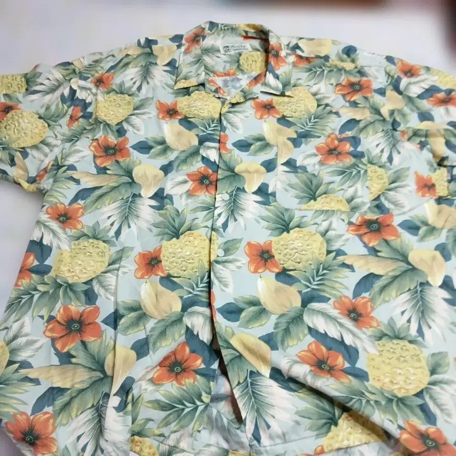 하와이안 스타일의 플라워와 후르츠 패턴 반팔 셔츠, 가슴 포켓 부착. - 브랜드: Pao Club - 디자인: 하와이안 스타일의 플라워와 후르츠 패턴 - 색상: 멀티 컬러 ( 파랑, 옐로우 컬러, 오렌지 등 ) - 포켓: 가슴 포켓 부착 방문해 주셔서 감사합니다.