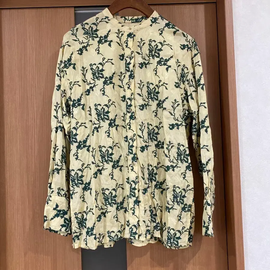 자수 꽃무늬 긴팔 셔츠 크림 x 그린