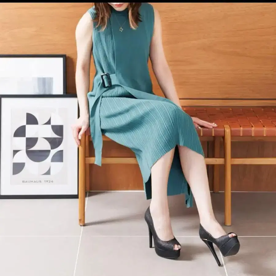 MARIHA 절개 원톤 안감 슬리브리스 플레어 롱 원피스