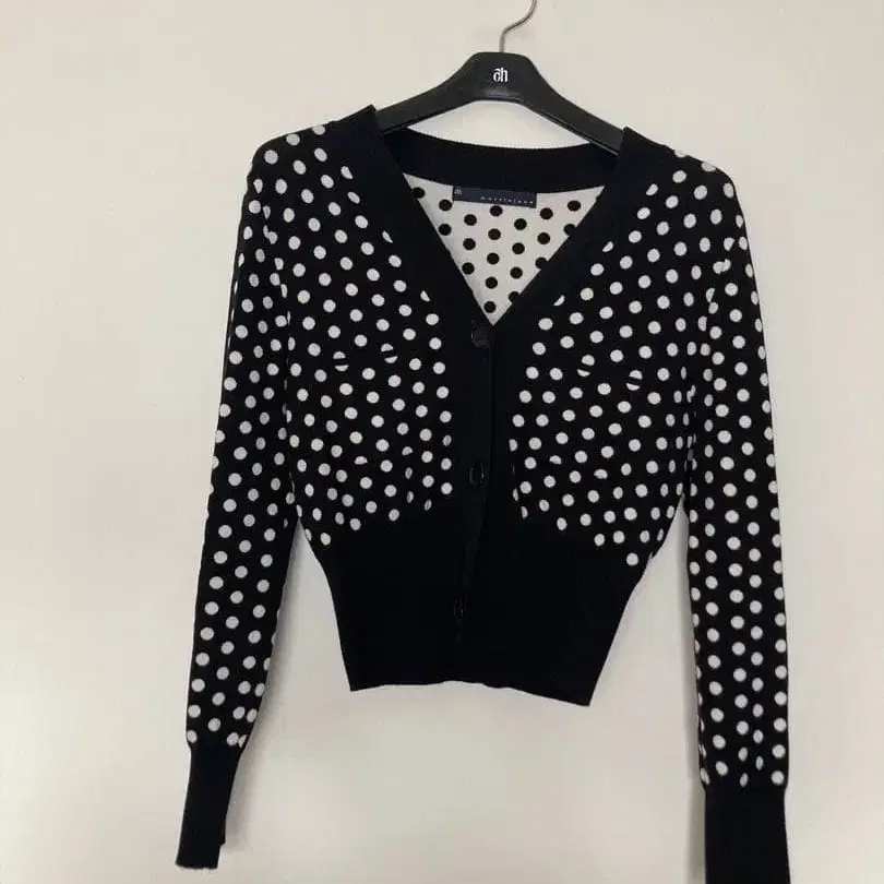 물방울 무늬의 블랙과 화이트 가디건, 스타일리시하고 돌려입기 쉬운 디자인. - 브랜드: marrtiniq - 색상: 블랙, 화이트 - 디자인: 물방울 무늬 - 스타일: 가디건 방문해 주셔서 감사합니다.