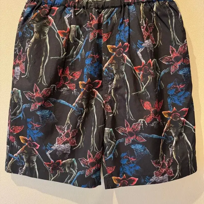 스트레인저 씽스의 캐릭터 데모고르곤이 그려진 유니크한 디자인의 숏팬츠입니다.