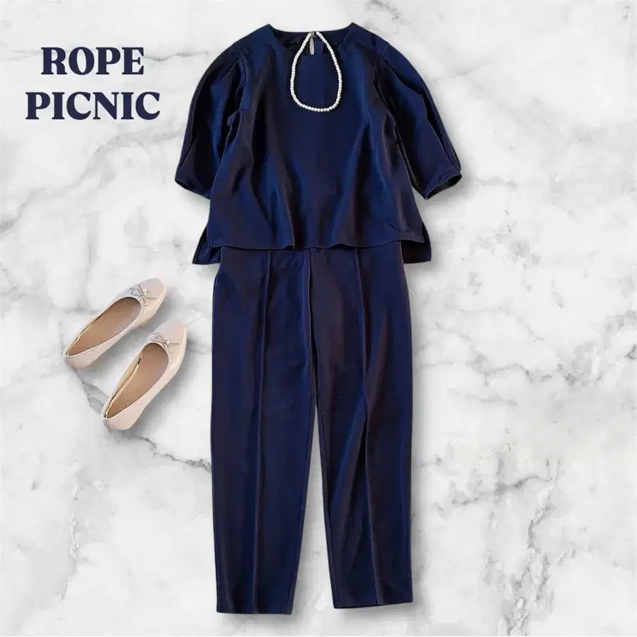[ 새상품급 ] 로페피크닉 컷 조젯 팬츠 셋업 네이비