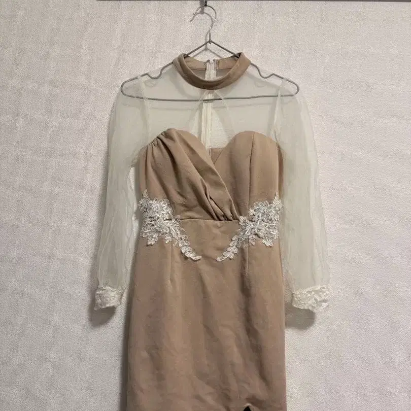 시스루 긴팔과 레이스 장식이 특징인 타이트 드레스. - 색상: 베이지 - 디자인: 시스루 긴팔 - 장식: 레이스 디테일 - 스타일: 타이트 드레스 - 넥라인: 하이넥 방문해 주셔서 감사합니다. 사이즈 - M