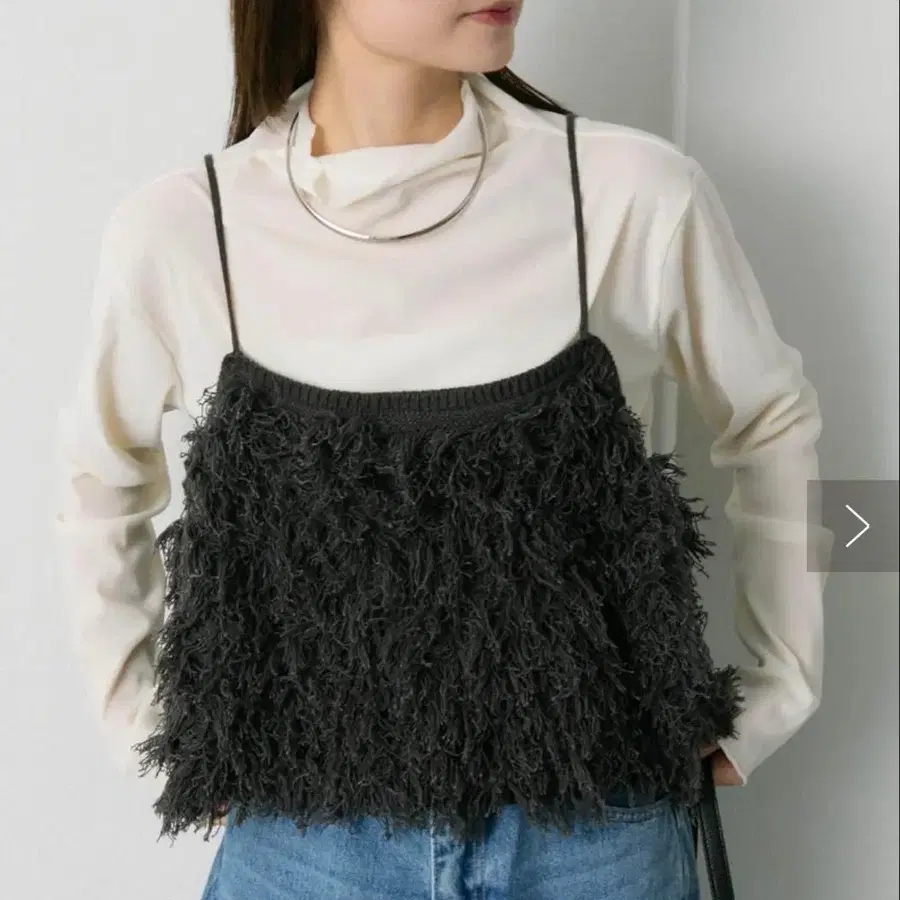 퓨어세신 프린지 자카드 니트 가는 끈 뷔스티에