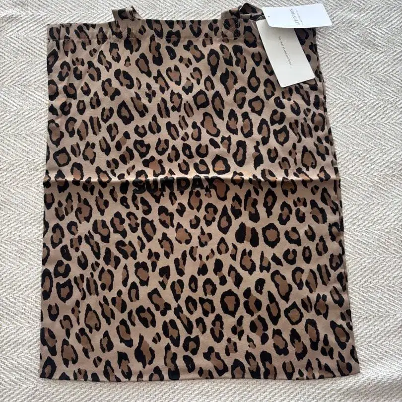 SUNDAY 레오파드 무늬 에코백 노트북이 들어갈 정도의 크기로 사용하기 좋은 사이즈감입니다. 택 포함 레이온 100% 구매 가격 6600엔 ※ 자택 보관이므로, 접은 자국(주름)이 있습니다. 배송 시에는 컴팩트하게 간편 포장으로 보내드리니, 양해 부탁드립니다. 봐주셔서 감사합니다.