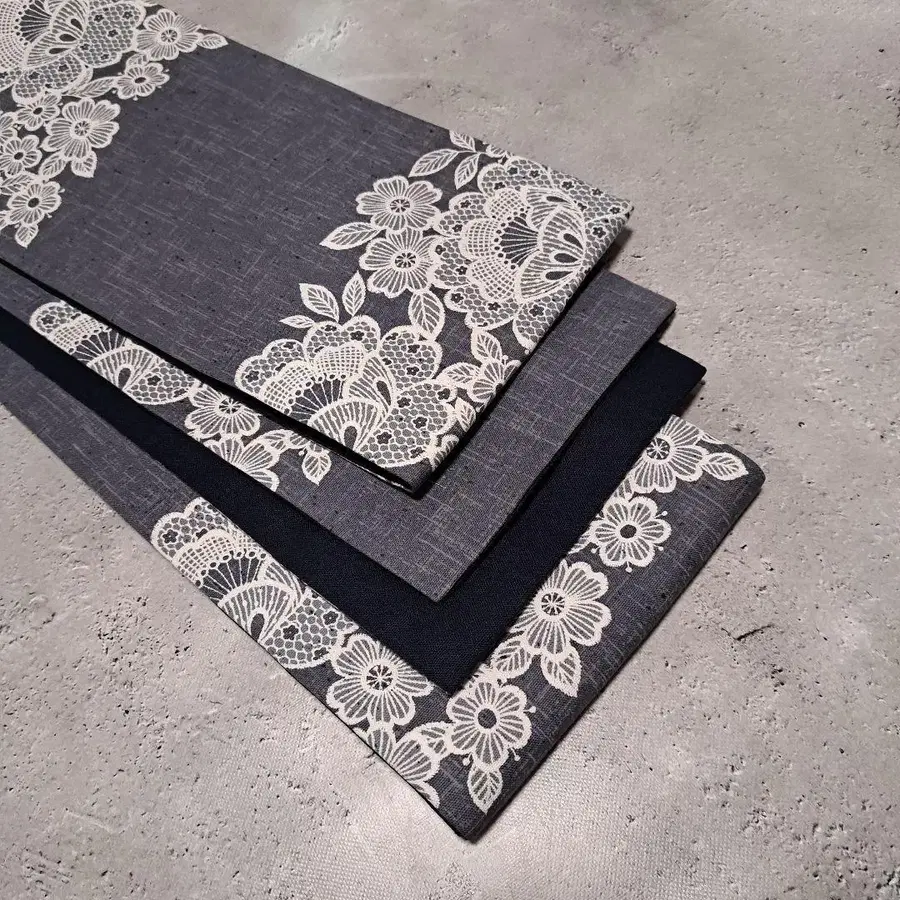 산뜻한 프린트 코튼과 일본산 코튼 린넨 네이비로 반폭 오비를 만들었습니다.
