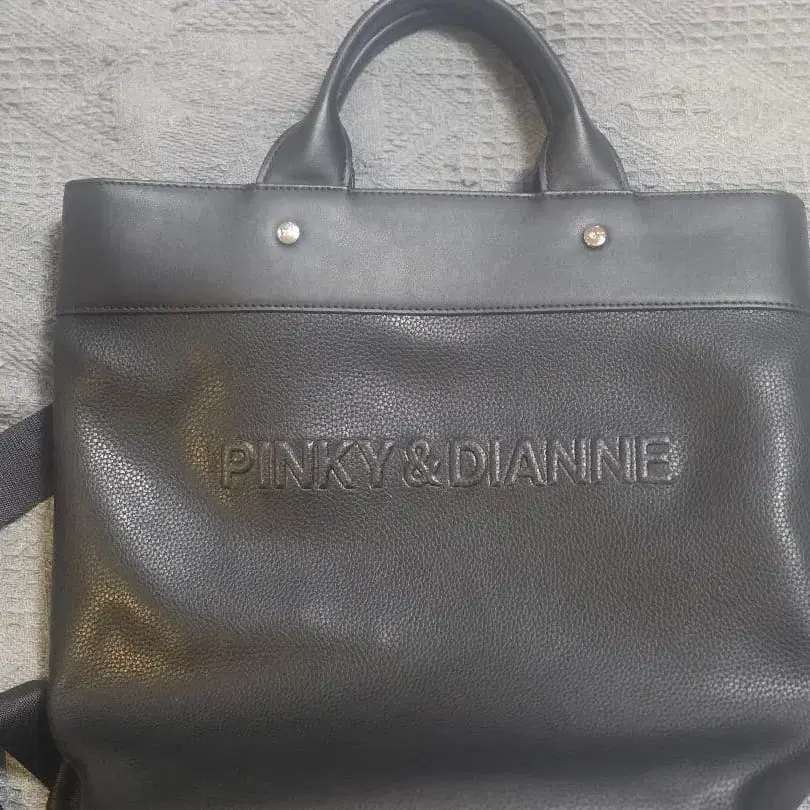 블랙 색상의 가죽 느낌 숄더 백팩 형태의 백입니다. 지퍼 포켓이 있으며, 조절 가능한 스트랩이 달려 있습니다.