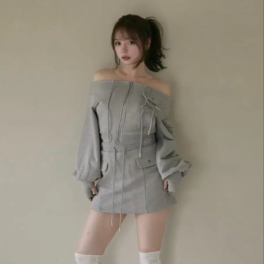 darich 다리치 후디 오프숄더 니트 미니 원피스 화이트