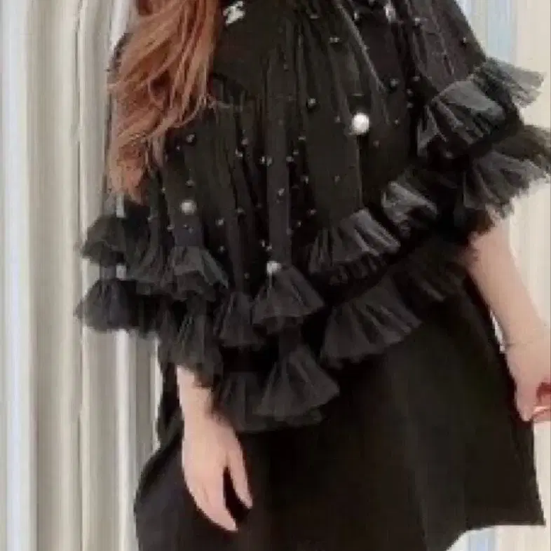 신디벤디 새상품 튤 케이프풍 상의 티셔츠 블랙