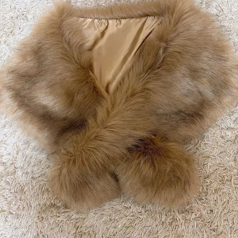블랙 퍼 숄 새틴 안감