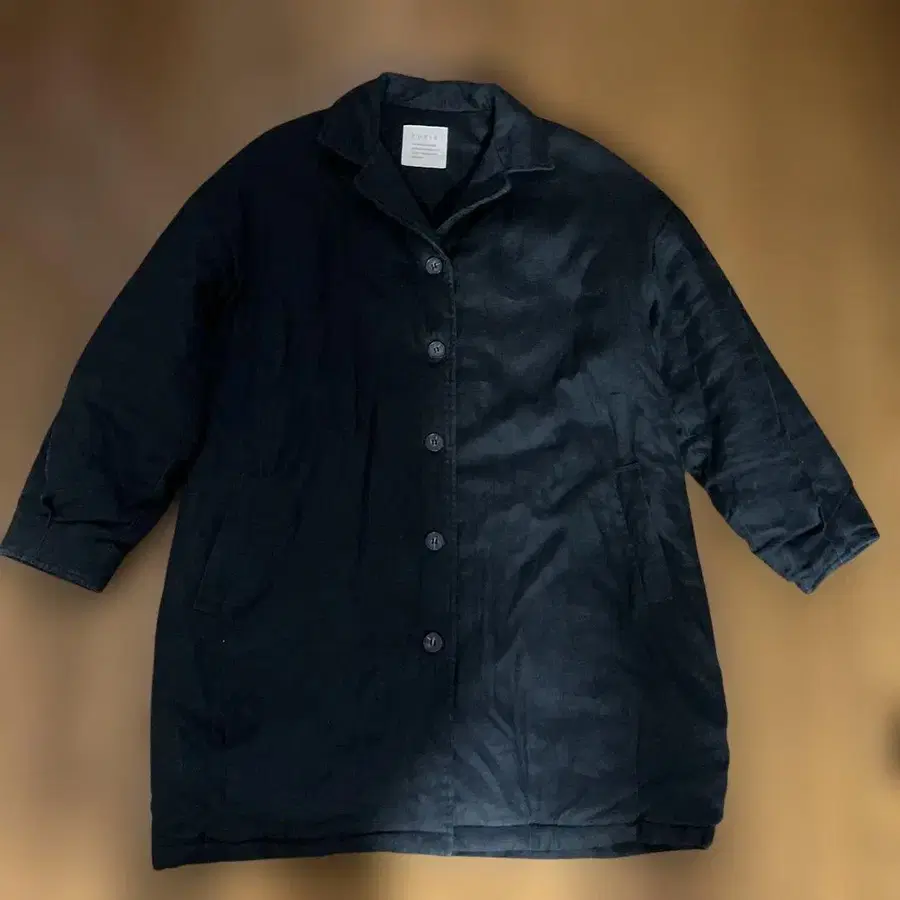TUTIE.의 충전솜 린넨 코트입니다. 새상품으로 구매하여 한 시즌 사용했습니다. 린넨을 좋아했지만 취향이 바뀌어 사용하지 않게 되어 보관만 했습니다. - 브랜드: TUTIE. - 색상: 린넨 특유의 네이비 색상으로 다크 그레이에 가깝습니다. - 스타일: 롱 코트 - 특징: 단추식, 포켓 부착 방문해 주셔서 감사합니다.
