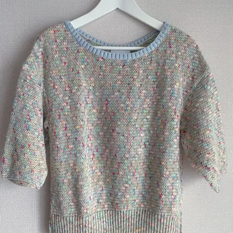 Sono의 파스텔 컬러가 귀여운 5부 소매 니트입니다. 뒷면의 리본 디자인도 귀여워서, 아주 오래전 세일 때 묶음 구매했지만 한 번도 입지 않고 보관만 하고 있었습니다. 아까워서 봄/가을 또는 겨울에도 레스토랑 식사 때 입어야겠다고 매년 생각했지만, 외출할 기회가 줄어 결국 입지 못한 채 판매하게 되었습니다.