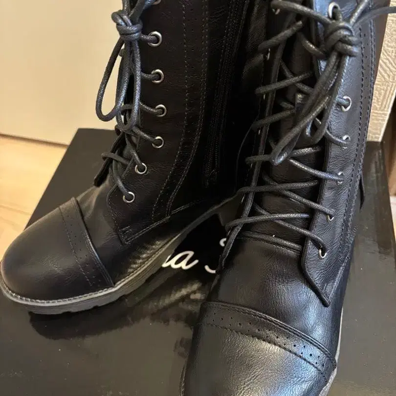 블랙 가죽 부츠 레이스업