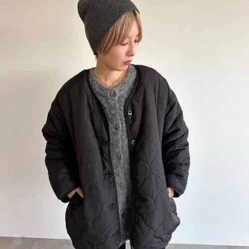 • JaVa 콜라보 노카라 오버 사이즈 퀼팅 코트 카키 브라운