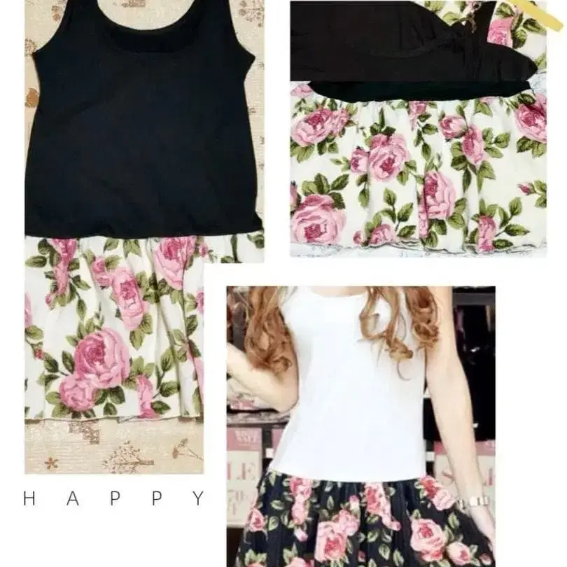 GOLDS infinity 꽃무늬 탱크 원피스 미사용 택 없음 컬러 화이트 x 블랙 신축성 있음 실물은 오른쪽과 아래입니다 (왼쪽 위는 착용컷 참고) 스커트 부분은 니트 원단 즉시 구매 OK! 가격 인하는 불가 109 브랜드, 갸루 스타일 패턴 - 꽃무늬 장미 로즈 플라워 실루엣 - 플레어