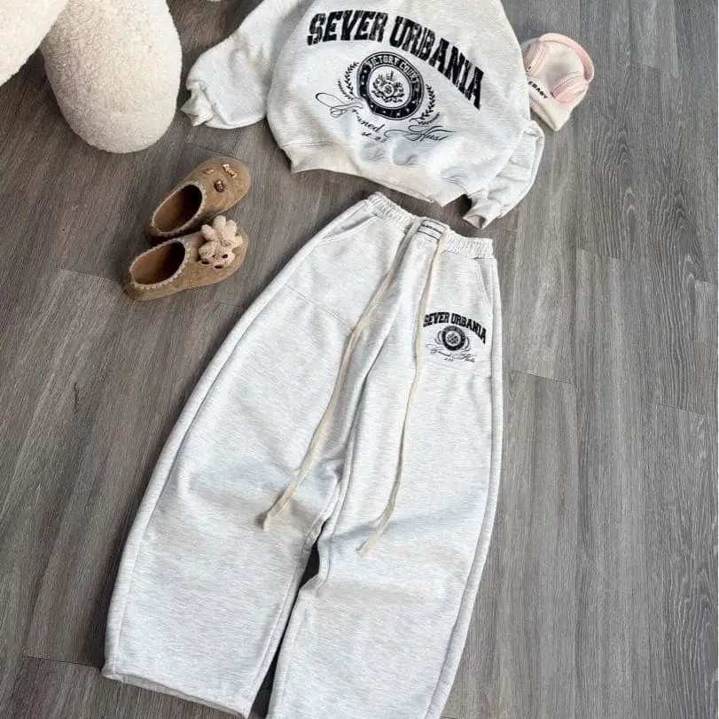 그레이 프린트 맨투맨 셋업 따뜻한 세트 겨울 의류