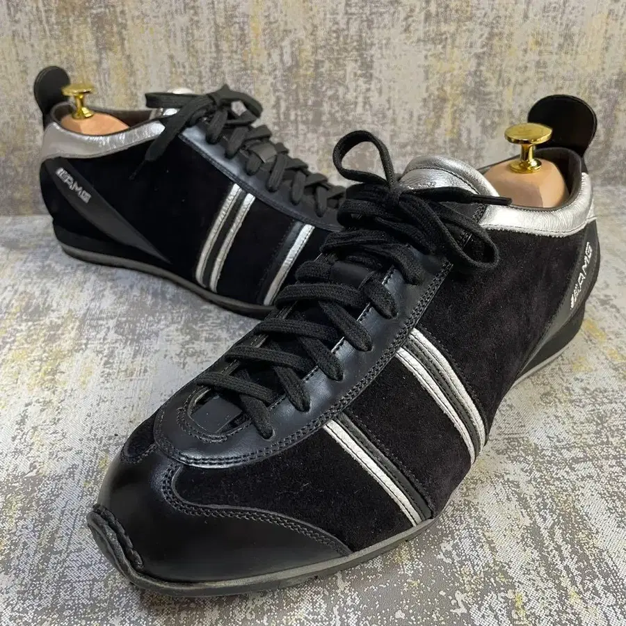 특징: 이탈리아제, 스웨이드, 가죽, 콜라보 스니커즈, 메르세데스, 벤츠, 블랙, 실버