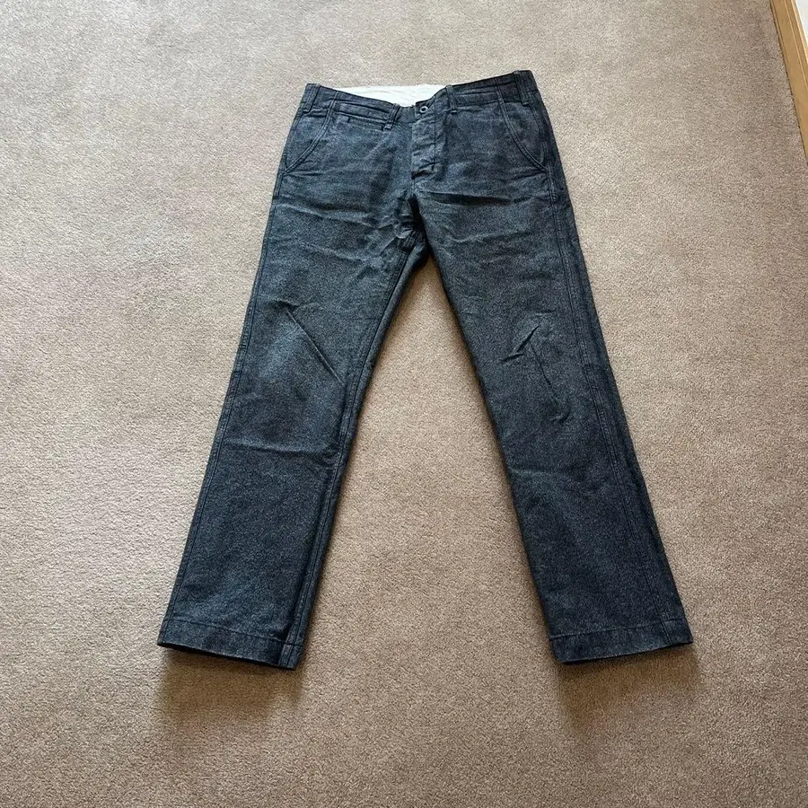 Lot No.401 SIZE31 버튼 플라이 면 100% made in Japan 다크 그레이 평평하게 놓았을 때 치수 (개인 측정입니다. 참고용.) 허리 40.5 밑위 25.5 인심 72 허벅지 30 밑단 폭 20.5 사용감 있습니다.