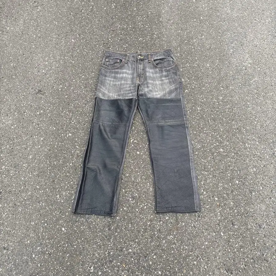 레더 데님 팬츠